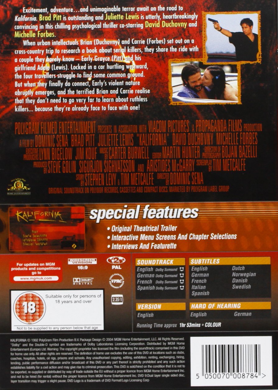 A writer (David Duchovny) and his photographer girlfriend leave New York to drive to a new life in California, taking in several Southern States so that they can visit murder sites for their new book on serial killers. Along the way they pick up two hitchhikers, one of whom (Brad Pitt) could provide an interesting case study for their research... Also starring Juliette Lewis.